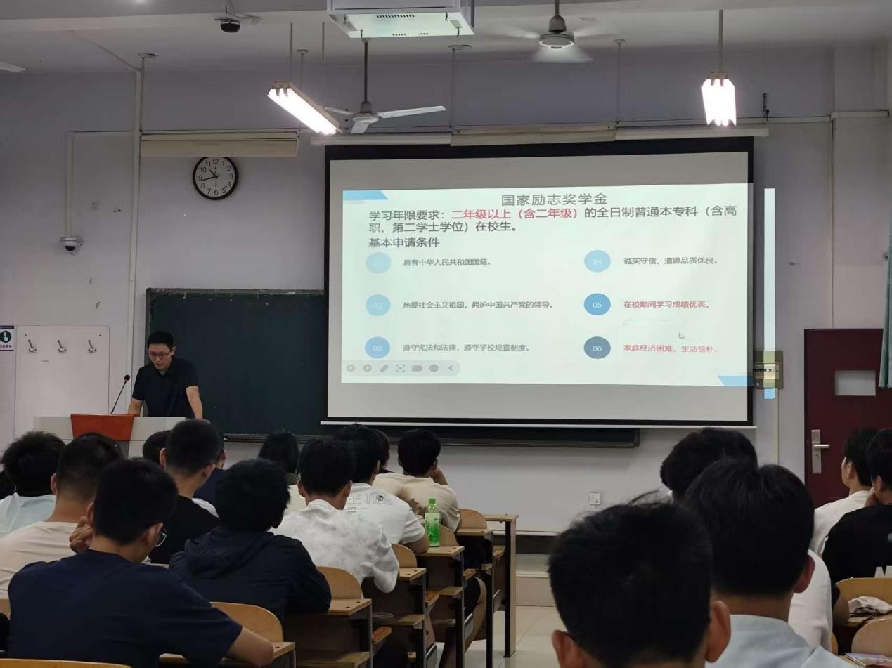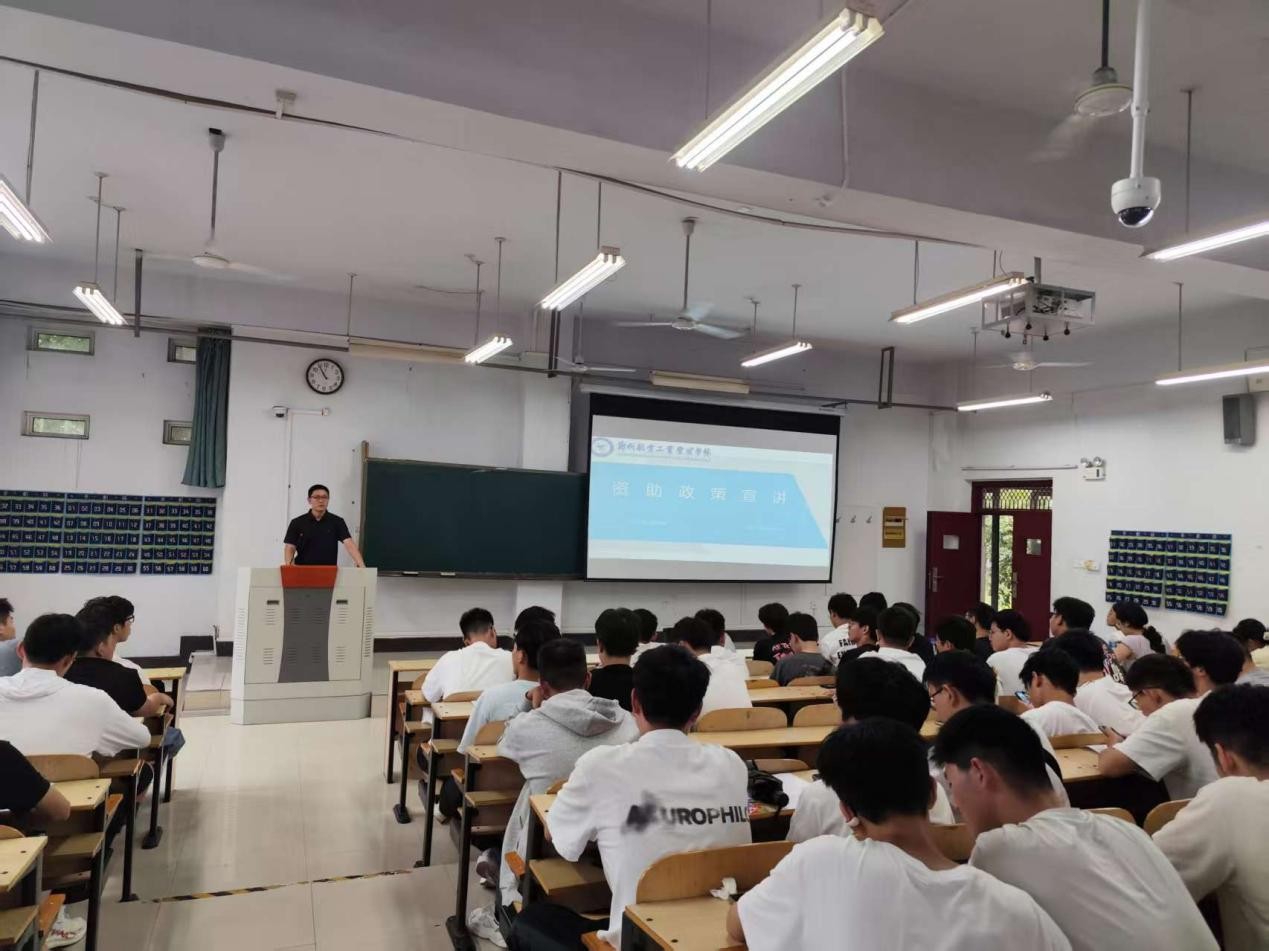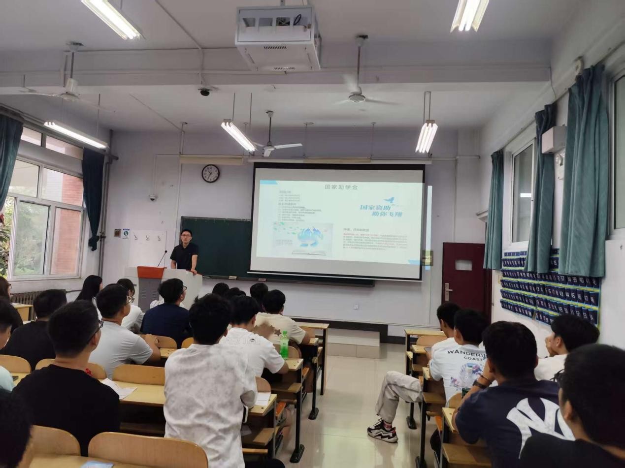 会议伊始,徐亚斌围绕学校奖助政策体系,从国家奖助学金、勤工助学岗位申请、国家助学贷款政策、绿色通道等多个方面向新生们详细介绍了相关资助政策,就往届学生在申请奖助学金过程中出错频率较高的问题加以强调,并对同学们提出的问题做出解答。随后,徐亚斌老师鼓励符合条件的家庭经济困难学生积极申请国家助学贷款和国家助学金,充分利用好政策帮助自身减轻家庭经济困难负担,顺利完成学业。最后,徐亚斌老师开展诚信教育,以身边生动的事例教育新生以诚立身,遵守契约精神,培养诚信意识。