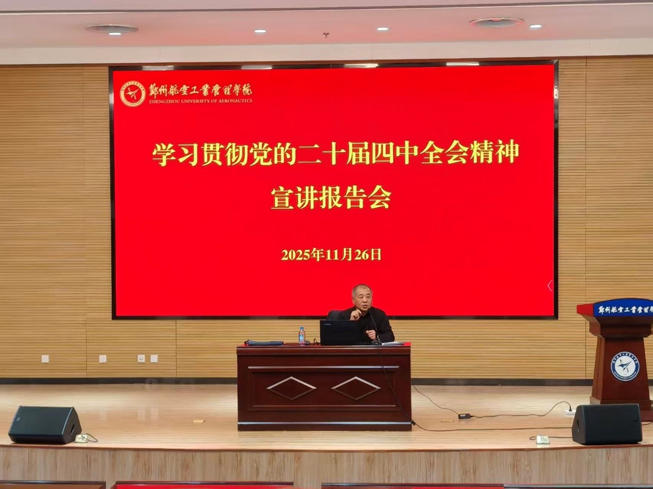 11月26日,郑州航院图书馆第二报告厅举办“学习贯彻党的二十届四中全会精神”宣讲报告会。我院党员及预备党员参会,姜运仓担任主讲人。