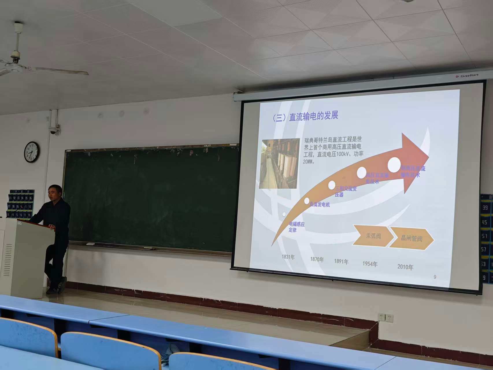 10月9日下午,电气工程系邀请国网河南直流中心技术专家汪恒在01B105教室为2023级电气工程及其自动化专业学生做了主题为“特高压直流输电技术发展及应用”的专业讲座。