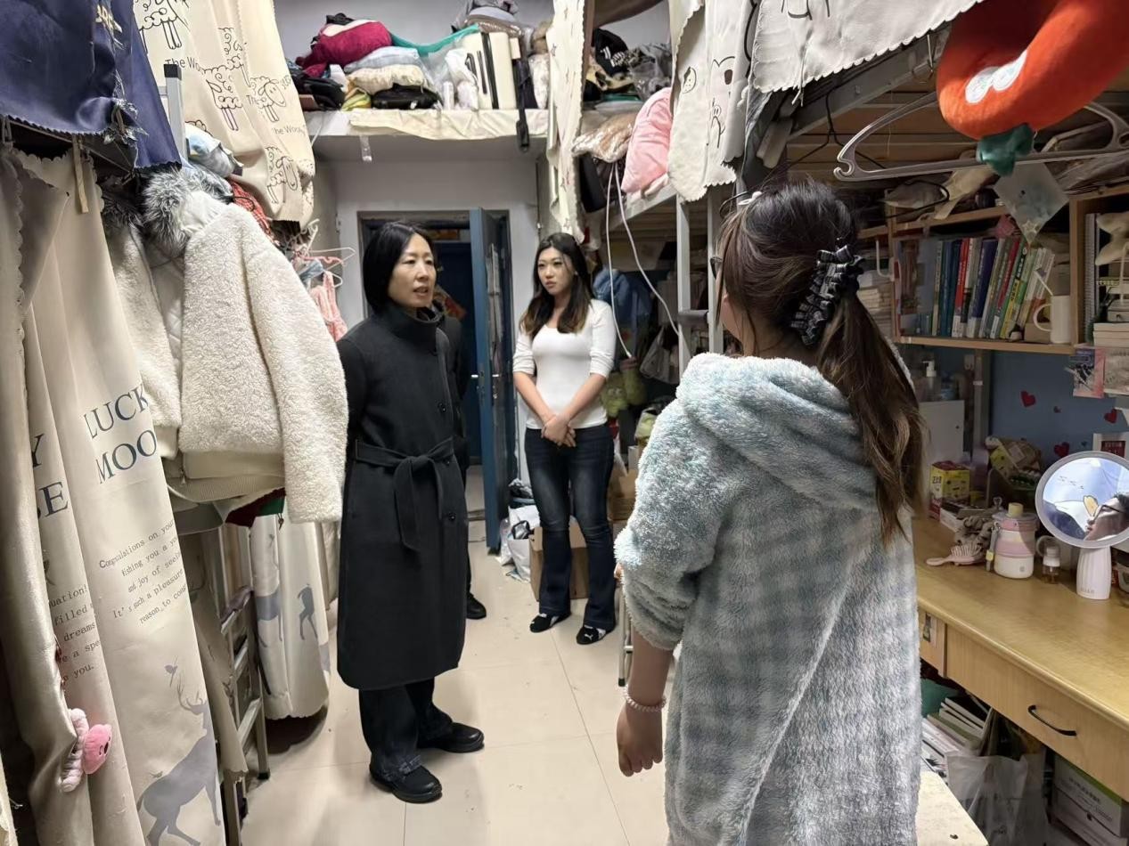 走访过程中,学院领导老师与同学们进行了面对面的亲切交流。党委书记刘凯亚详细询问了同学们的假期生活、返校适应情况及毕业论文的进度。她重点关心了正在准备考研复试和备战电网招聘考试的同学,逐一了解大家的备考状态和存在的困难,并鼓励考研的同学们保持良好心态,认真准备复试与调剂,并预祝大家成功“上岸”。
