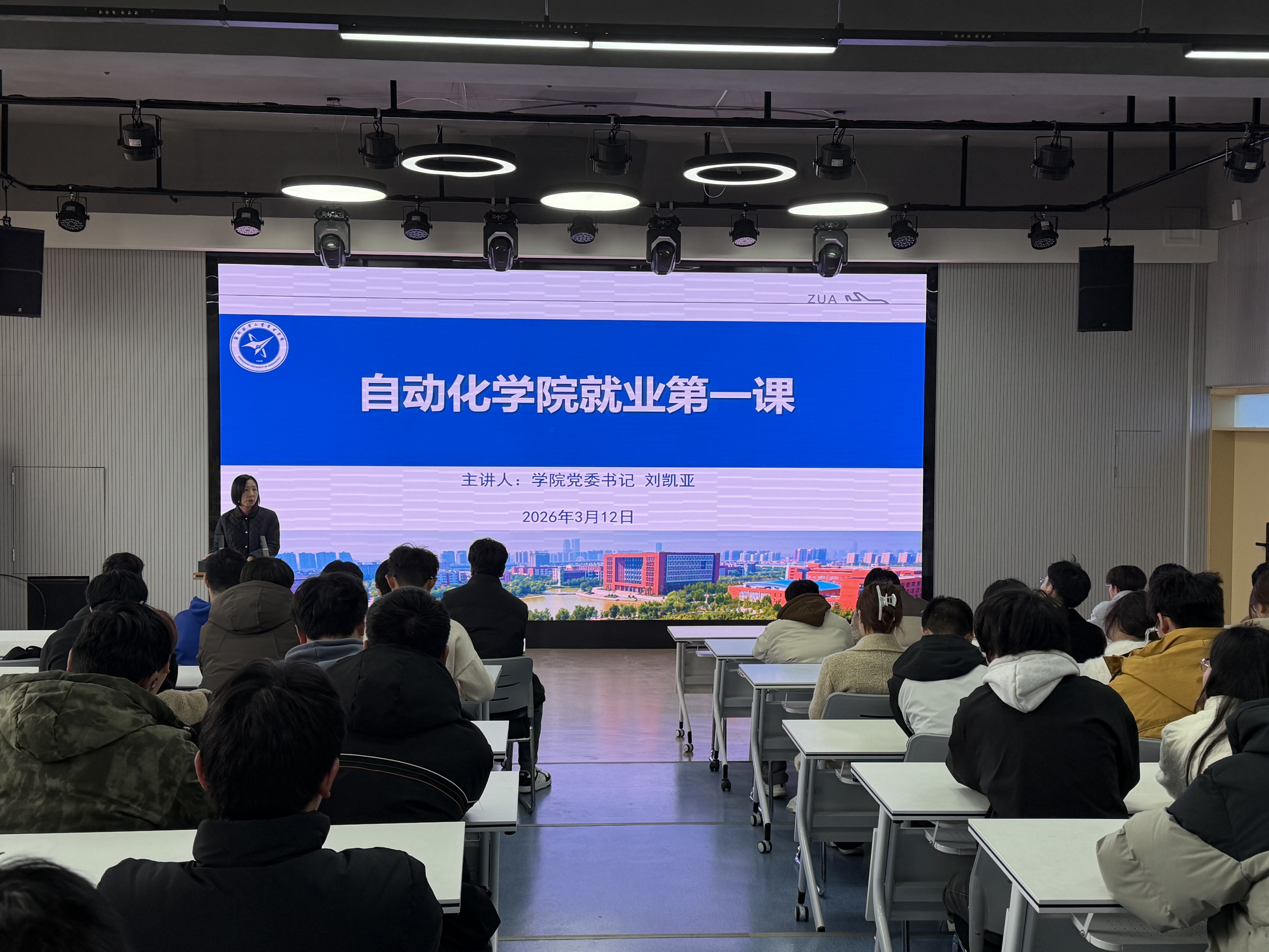 为深入贯彻落实党中央、国务院关于高校毕业生就业工作的决策部署,帮助2026届毕业生认清就业形势、明晰职业方向、提振求职信心,3月12日,自动化学院党委书记刘凯亚为自动化学院全体毕业生讲授“就业第一课”。就业办主任曹迎军,毕业班辅导员王姝文及2026届全体毕业生到场聆听。